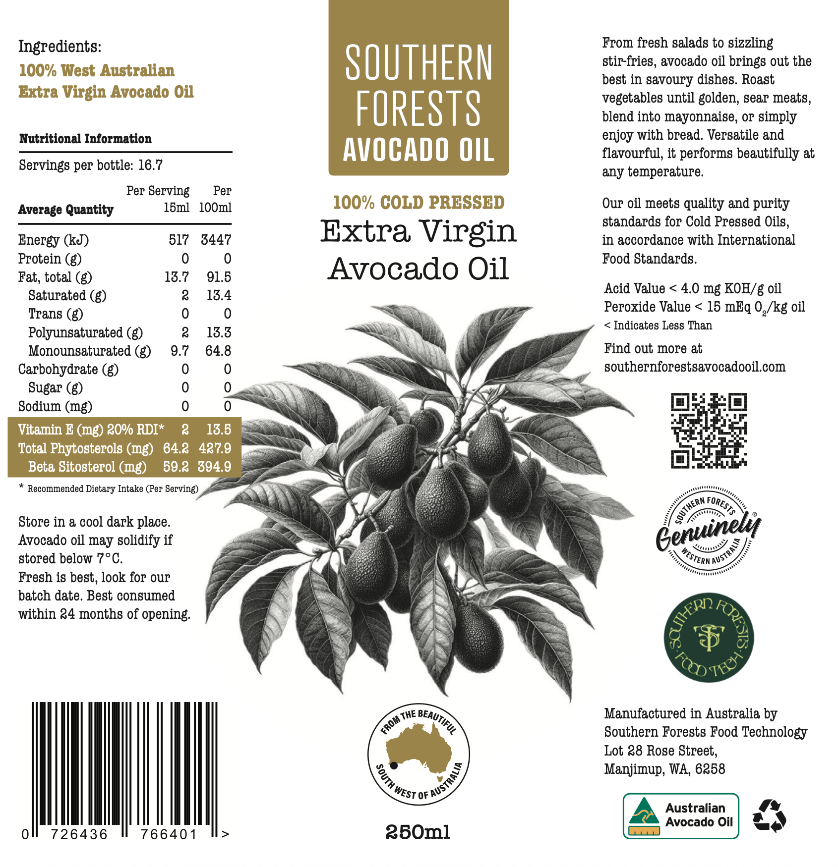 Experience the rich, buttery flavour of pure West Australian Extra Virgin Avocado Oil, cold-pressed from perfectly ripened avocados grown in the pristine Southern Forests region. Versatile, nutrient-dense, and naturally delicious, this oil elevates everyday meals with vibrant freshness and exceptional quality.